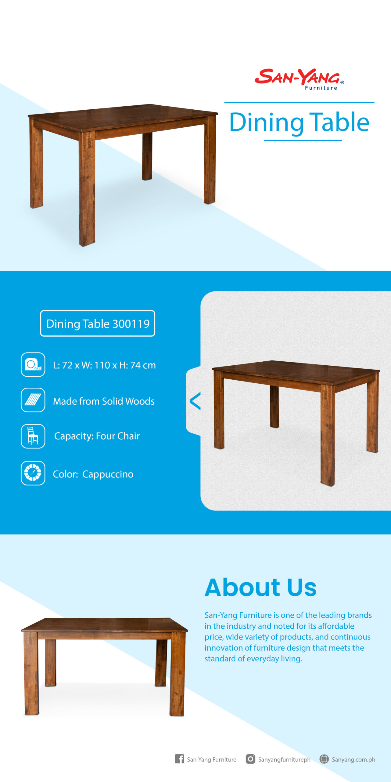 | What's in the box | 1 x San-Yang Dining Table , 1 x Accessories , 1 x Assembly Manual |